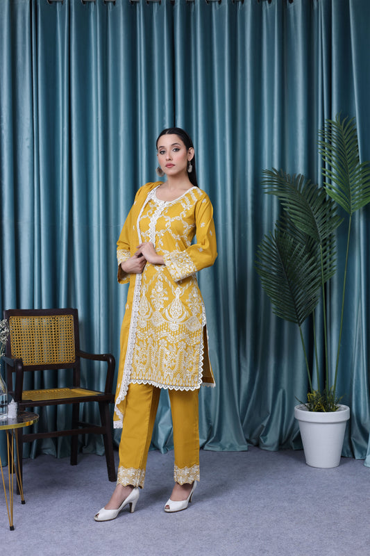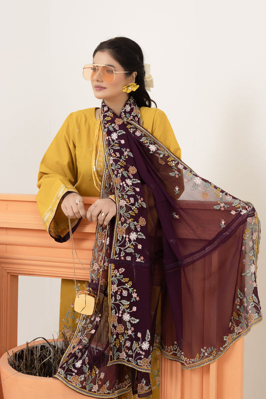 2199 – Yellow Embroidered 3-Piece Lawn Cotton Suit – Elegant Summer Wear