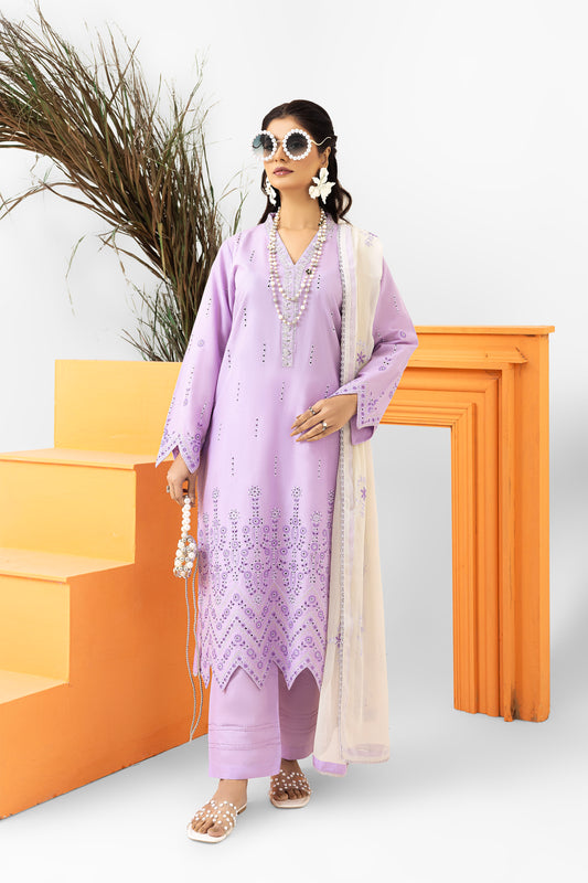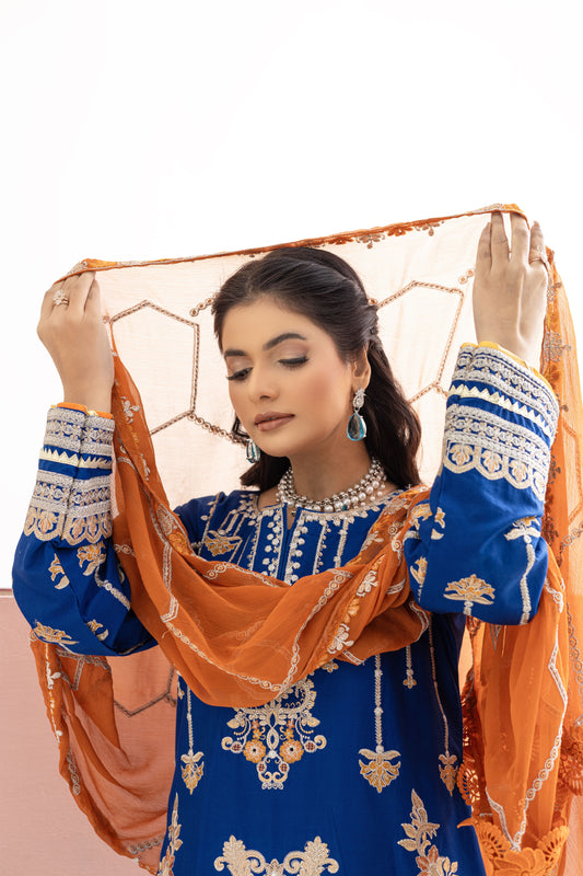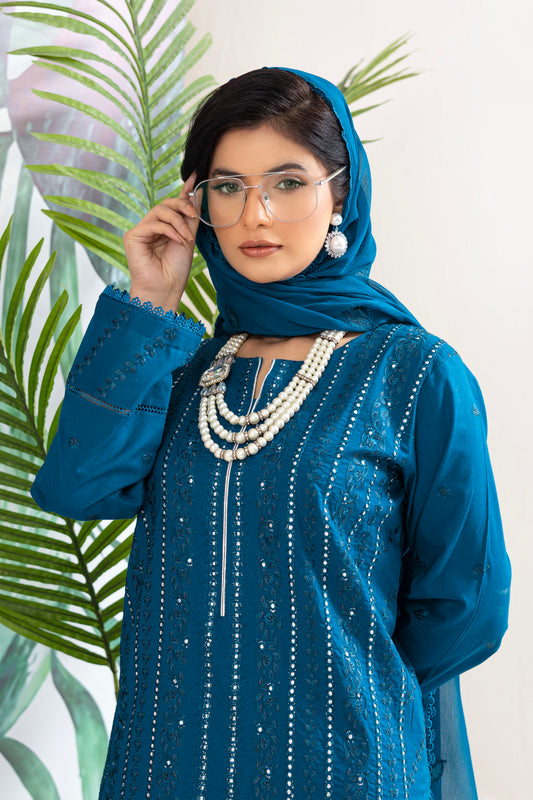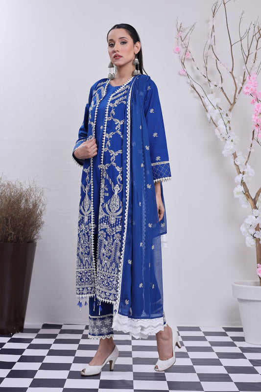2258 – Blue Embroidered 3-Piece Lawn Suit – Elegant Summer Wear