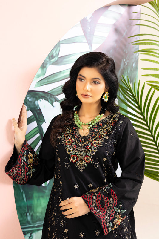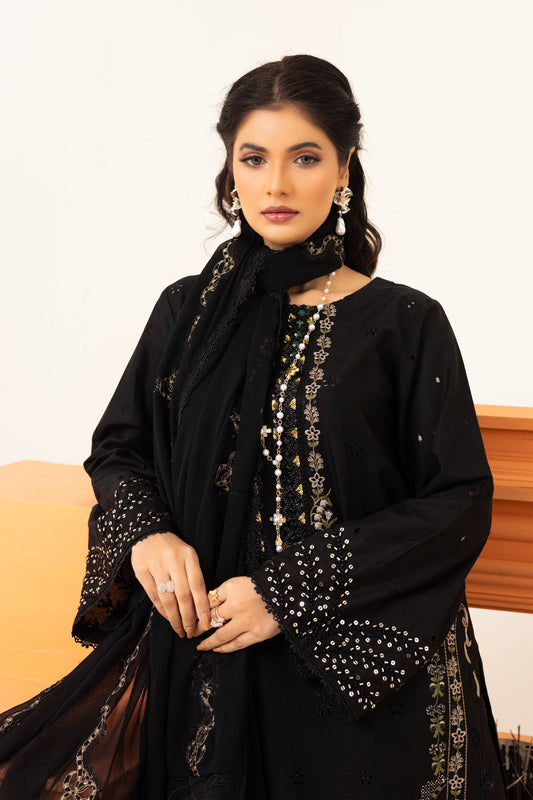 2259 – Black Embroidered 3-Piece Lawn Suit – Elegant Summer Wear