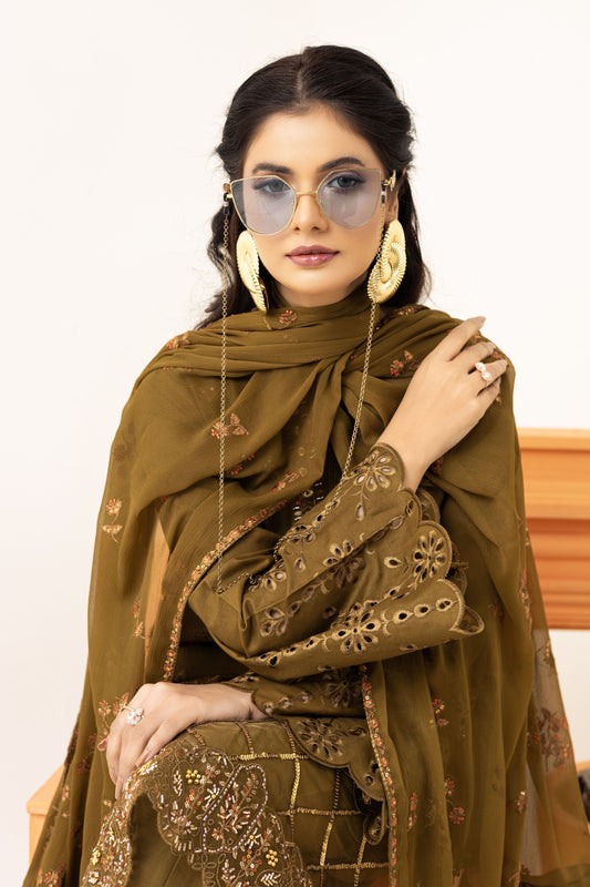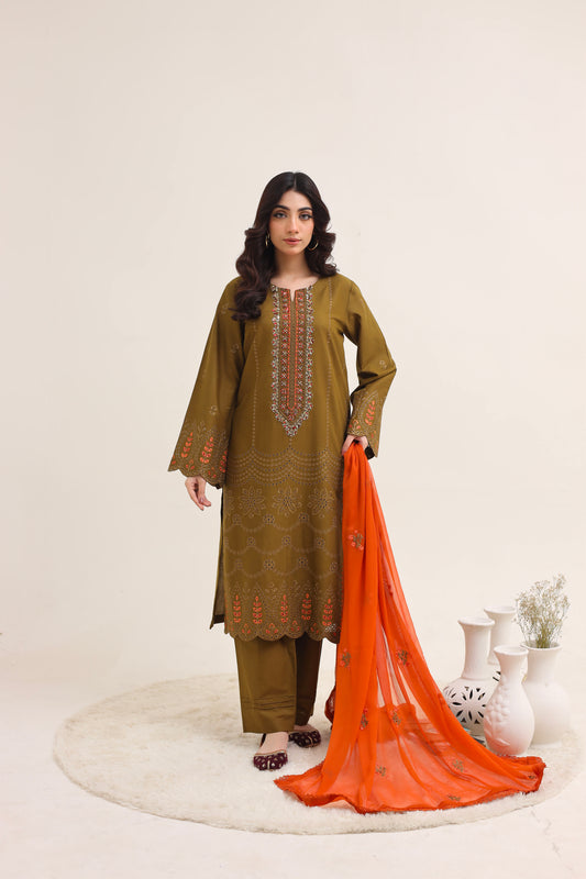 2223 – Tobacco Embroidered 3-Piece Lawn Suit – Elegant Summer Wear