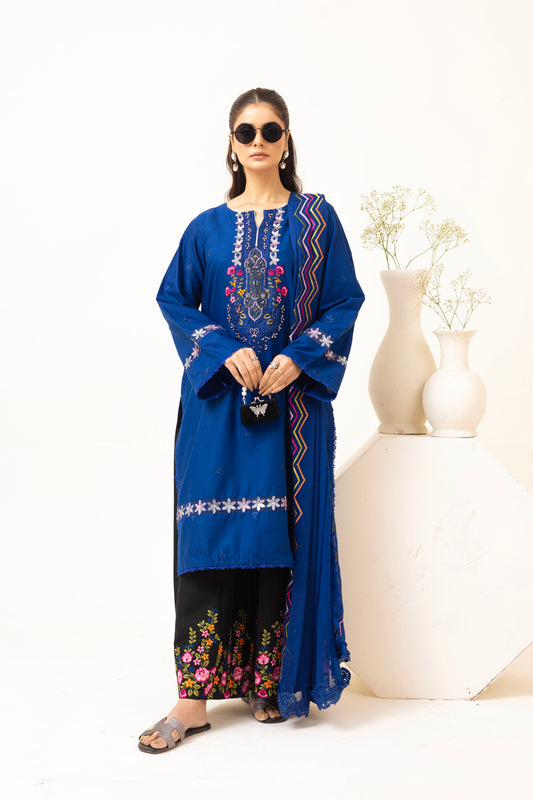 2199 – Ink Blue Embroidered 3-Piece Lawn Cotton Suit – Elegant Summer Wear