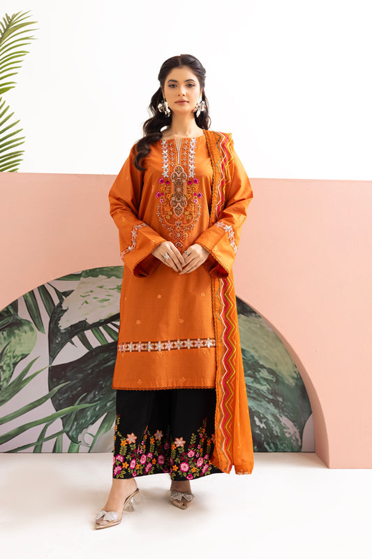 2224 – Orange Embroidered 3-Piece Lawn Suit – Elegant Summer Wear