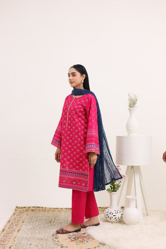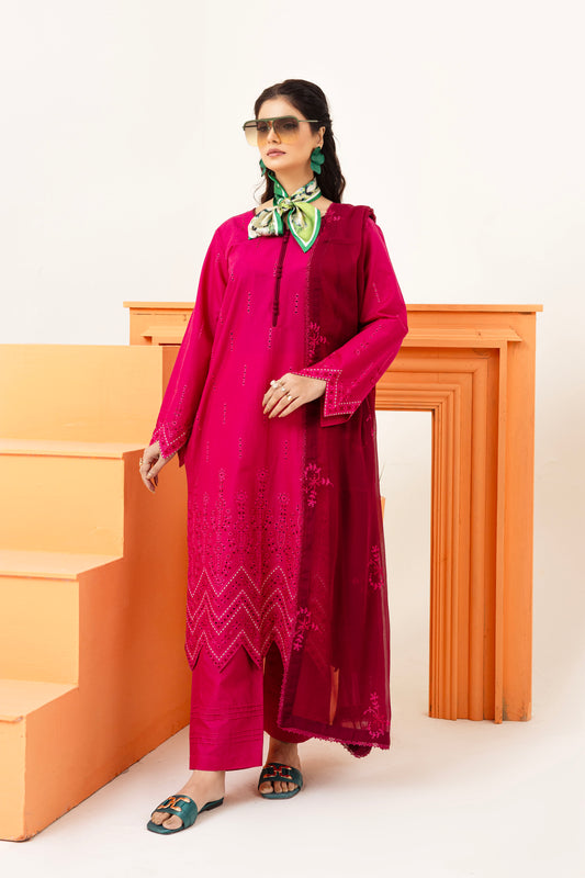 2258 – Hot Pink Embroidered 3-Piece Lawn Suit – Elegant Summer Wear