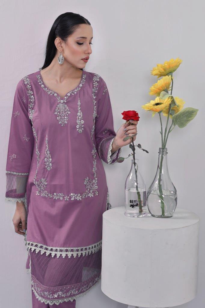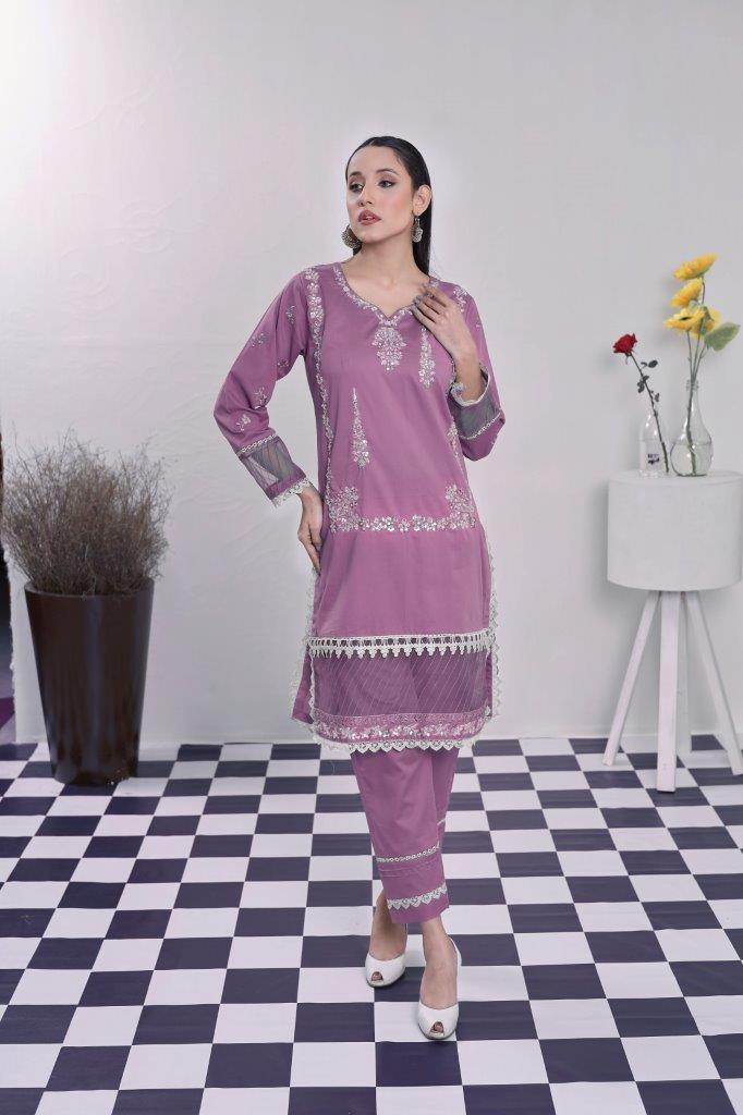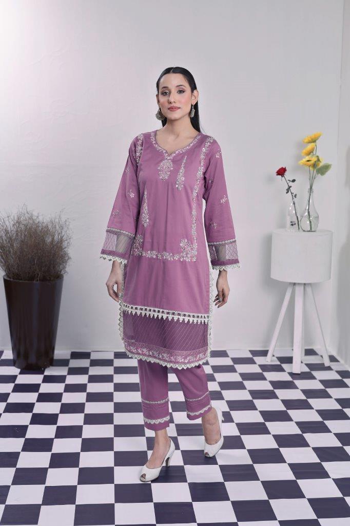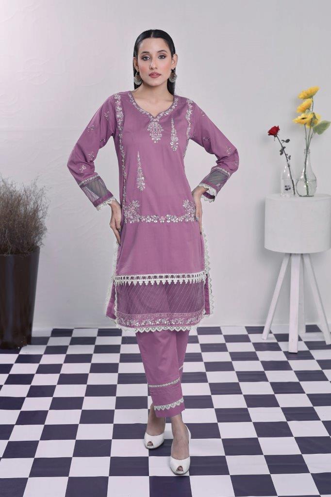 2 Piece Embroidered Lawn Cambric Suit | SS-2202-Fuchsia Pink