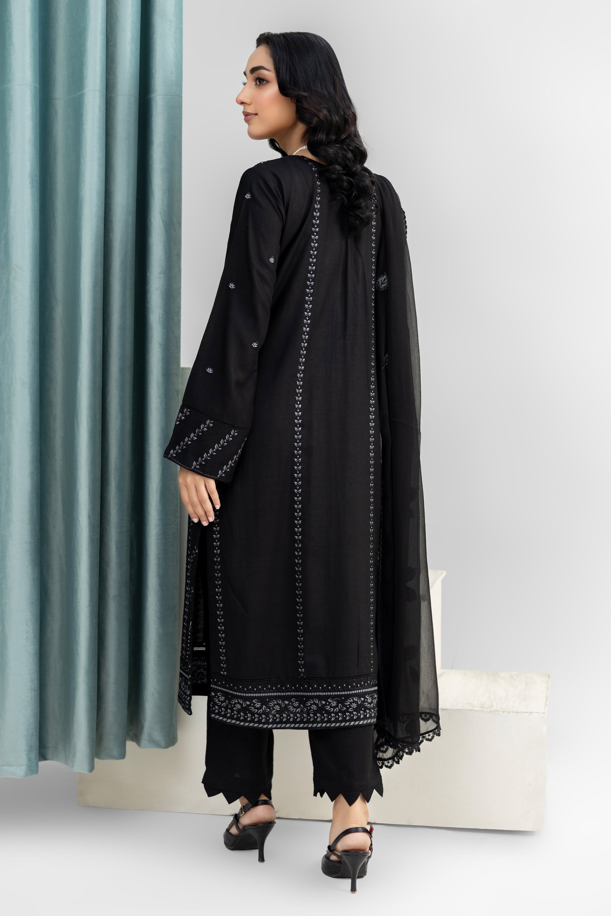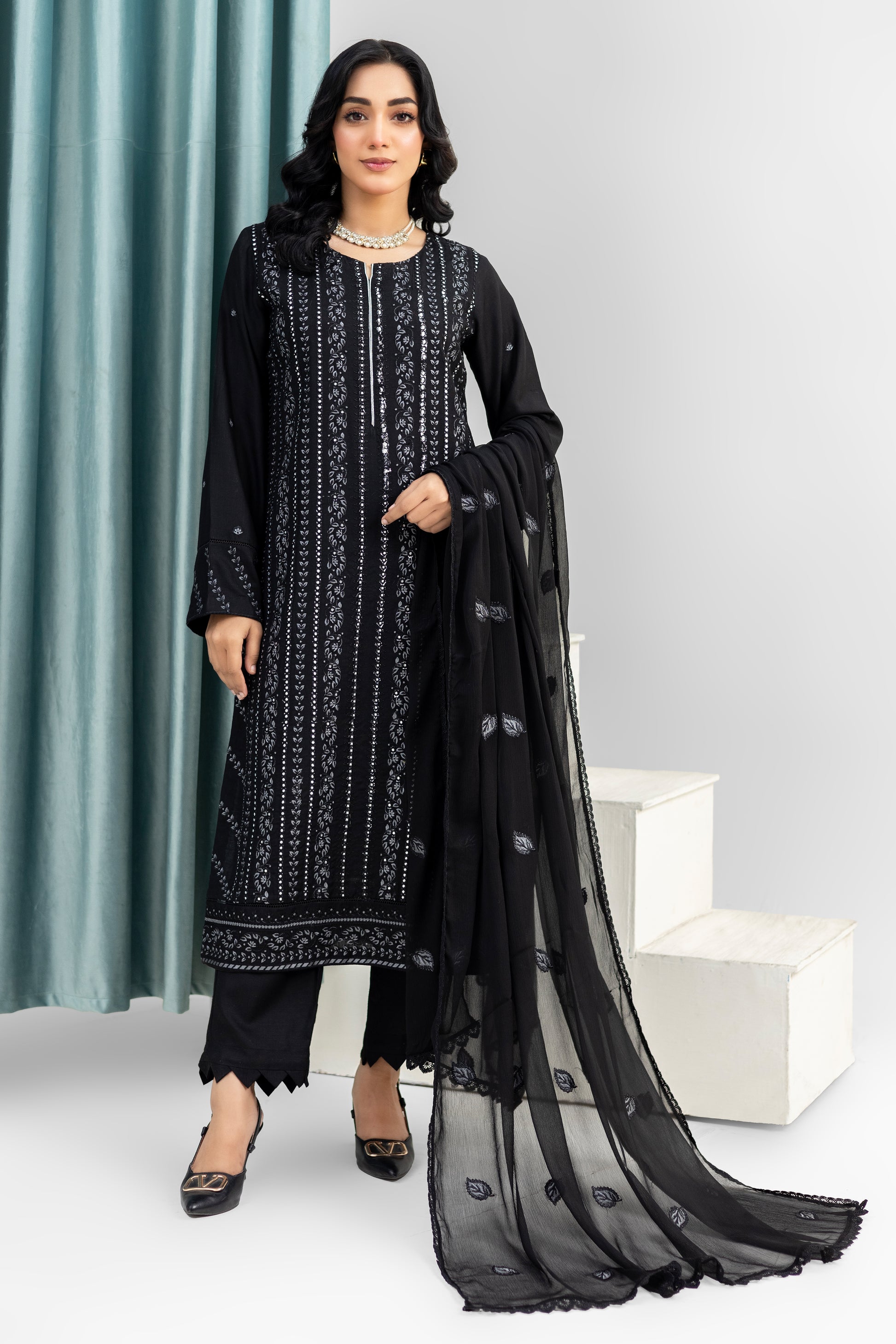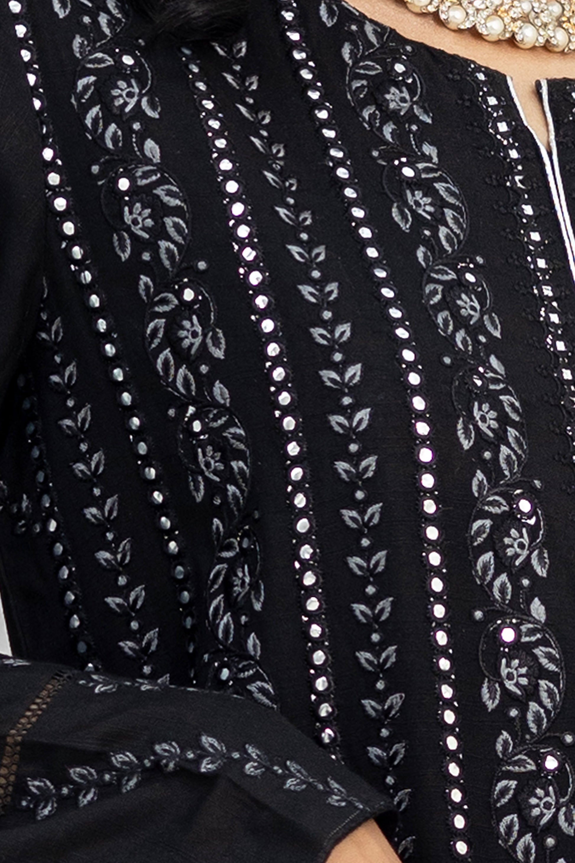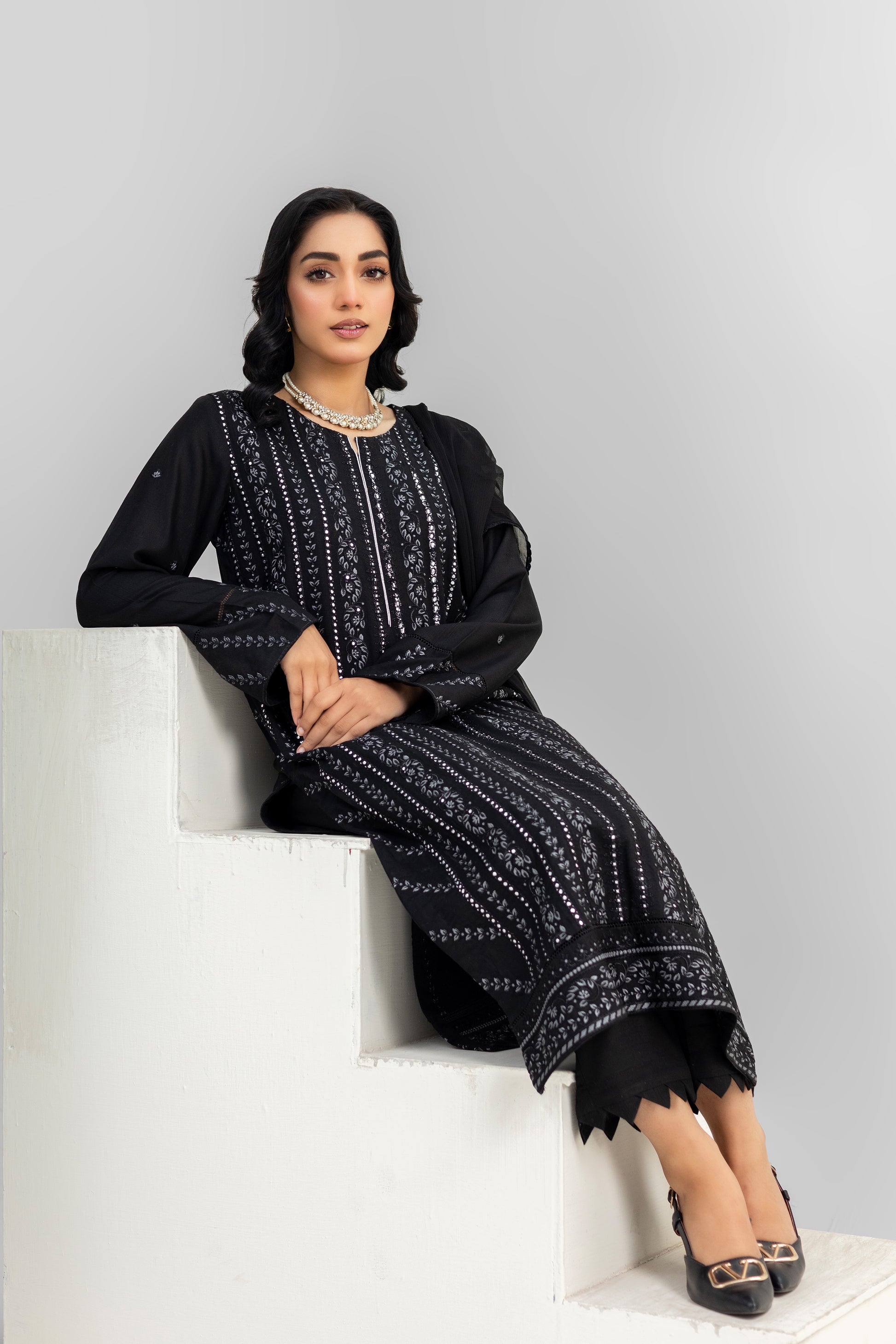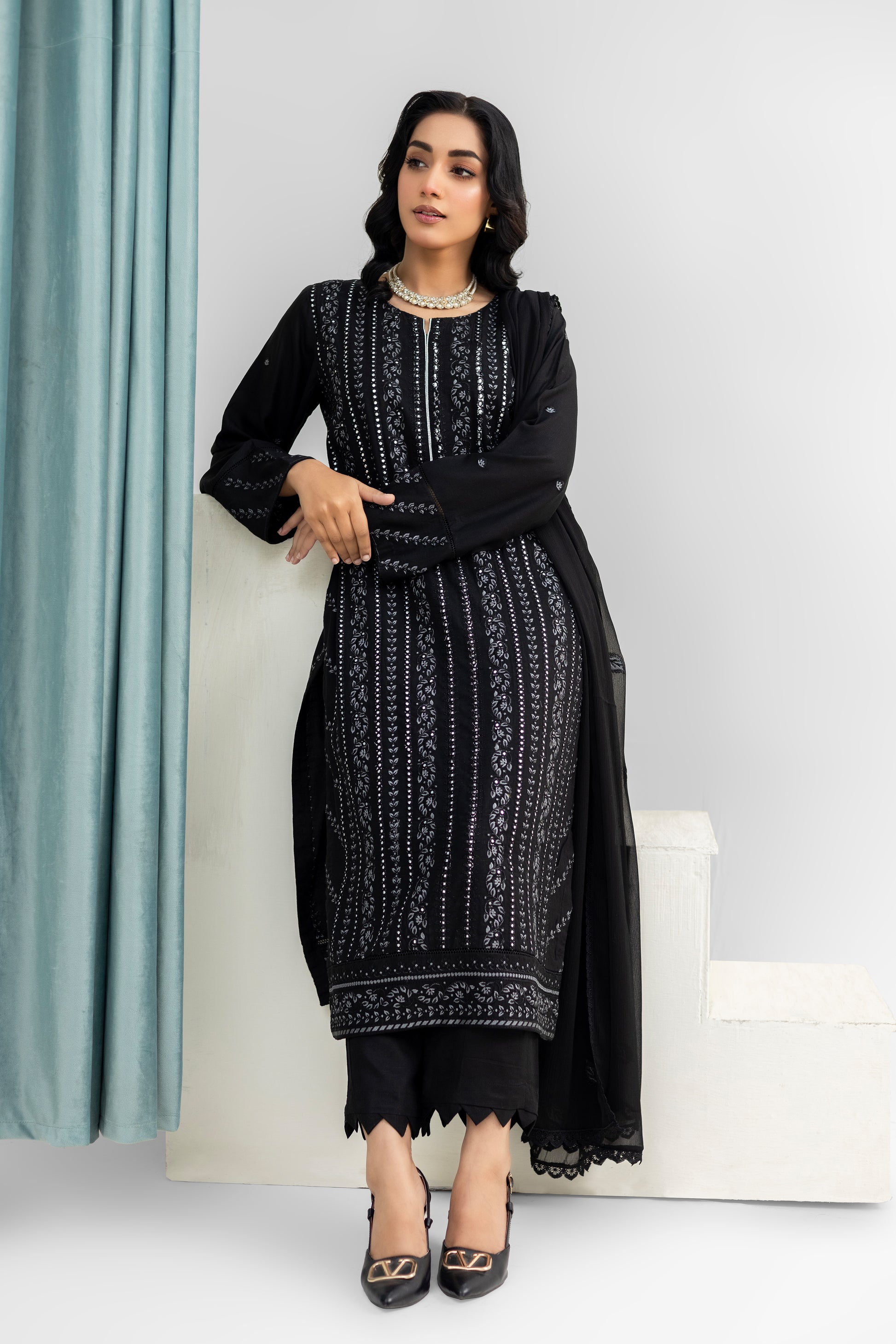 It's a heavy embroidered shirt that features stunning panni detailing on the front, embroidered back and sleeves as well. You'll love the laces on the shirt and the sleeves border, and the same color cotton trouser is a perfect match. The beautifully embroidered dupatta features a four-side Croatia laces border, adding an extra touch of elegance to this ensemble.
